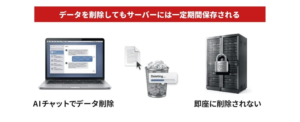 「削除したから安心」ではなく、「削除後も一定期間はサーバーに残る」ことを前提に、入力する情報を選ぶ意識が大切です。