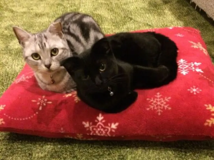 休日は2匹の猫と遊ぶところからスタートします。毛がふわふわなので、フローリングでゴロゴロ遊んでいるだけで掃除が進むのが密かなメリットです(笑)。